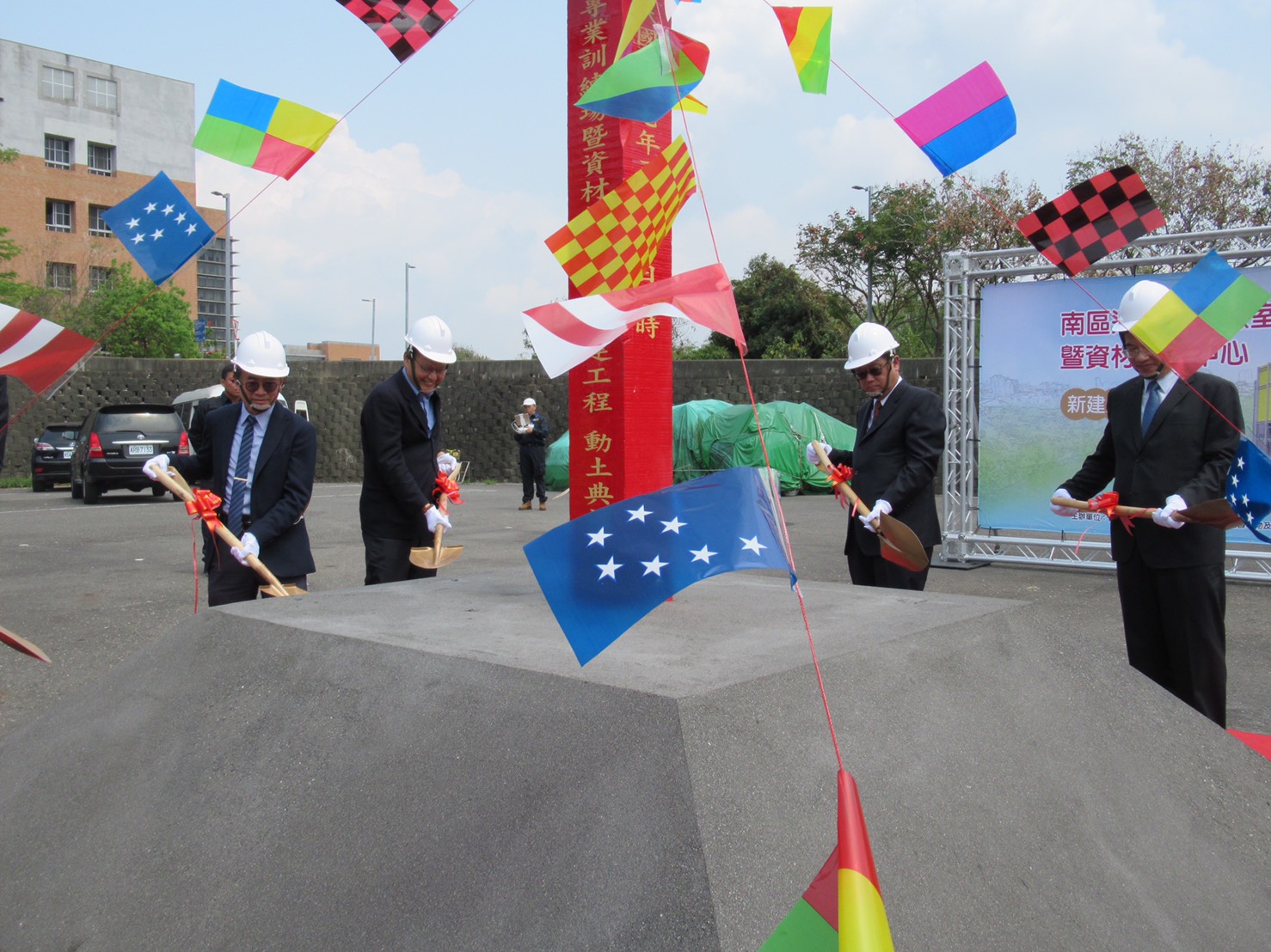 為提升毒災專業訓練,強化應變人員災害應變能力,並考量國內跨縣市區域資材調度需求,縮短事故應變及器材設備支援時間,環保署向行政院爭取興建「南區毒化物運送及實驗室專業訓練場暨資材調度中心」經費約2億元,並委託國立高雄科技大學代辦,後續辦理委託規劃設計及監造服務,以及工程招標,現在工程即將正式開工,辦理動土典禮。