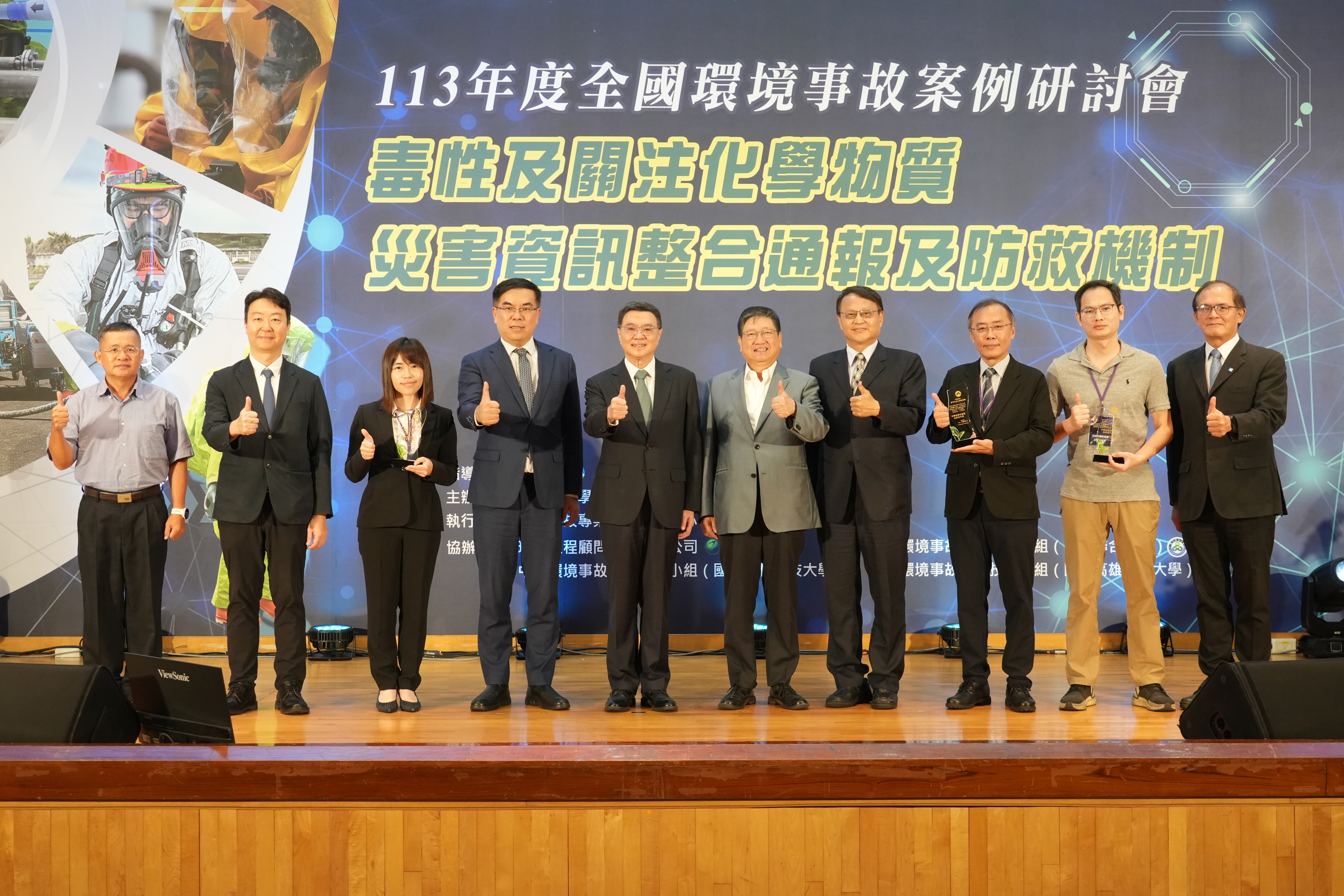 本部於113年8月6日至7日辦理「113年度全國環境事故案例研討會-毒性及關注化學物質災害資訊整合通報及防救機制」暨績優運作管理聯防組織頒獎活動,由彭啓明部長親自主持,並特別邀請到行政院院長卓榮泰蒞臨指導,與產、官、學、研各界逾600人共同回顧公私部門過去一年在毒化災害防救領域的努力與成果。以毒性及關注化學物質災害資訊整合通報及防救機制為主軸,跨部會資訊整合、科技防救災發展運用為亮點,結合毒化災案例研討、績優聯防組織頒獎活動辦理,展示資訊整合通報、科技防救災、應變資材等主題。本次活動頒發「全國性/地區性聯防組織運作績優獎」、「地區性聯防組織績優獎」、「聯防支援貢獻獎」及「全國性聯防組織深耕運作獎」等獎項,鼓勵各聯防組織的努力及付出。 |