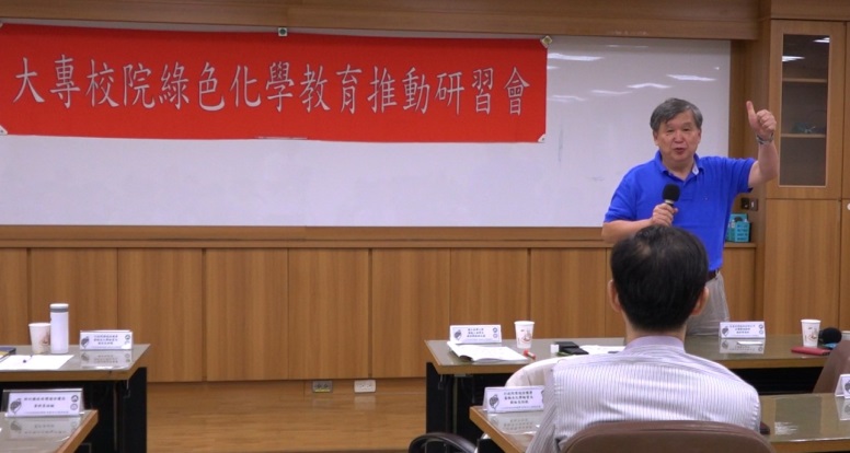 | 活動內容 | 1.大專校院綠色化學教育推動研習會。 2.邀請國立臺灣大學環境工程學系蔣特聘教授本基講授綠色化學教研案例。 3.邀請產業-友達光電股份有限公司魏憶琳經理分享企業實際應用綠色化學之成果。 |