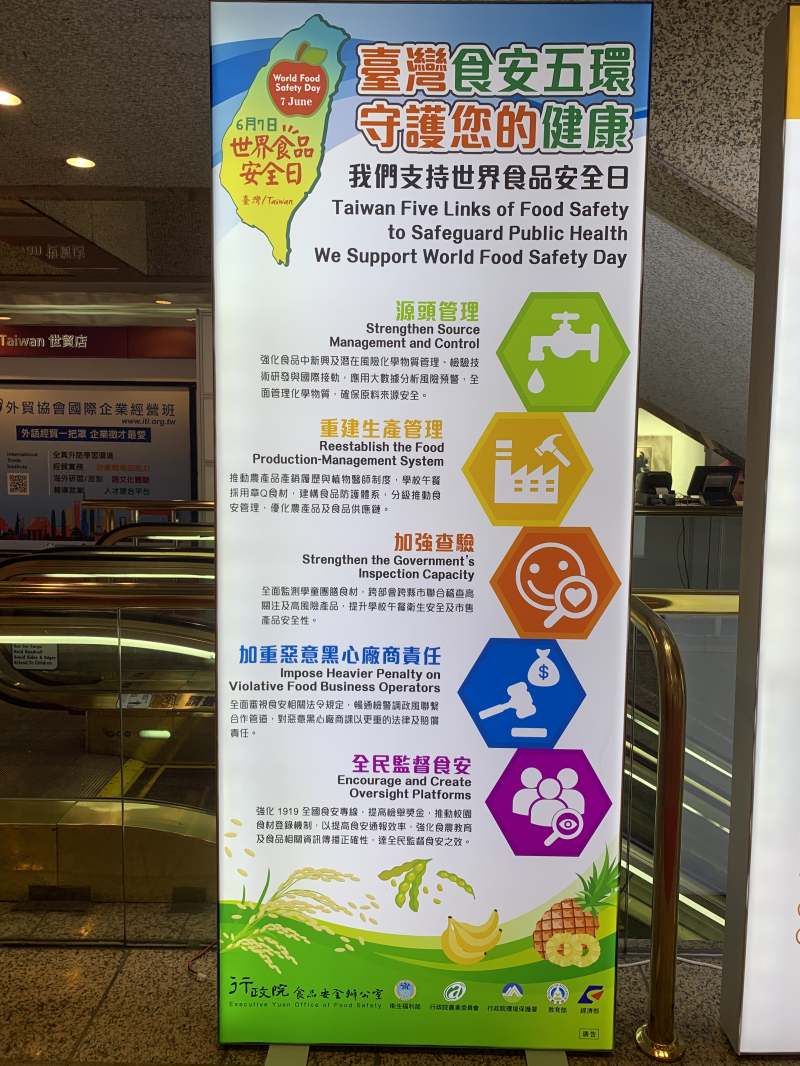 | 活動內容 | 2018年12月20日聯合國大會通過決議,決定自2019年起將6月7日定為「世界食品安全日」(World Food Safety Day)。為響應世界食品安全日創立元年,衛福部邀集環保署、農委會、教育部及經濟部共同出席「世界食品安全日 優良食品業者表揚會」,鼓勵食品業者與政府單位共同守護食品安全。 |