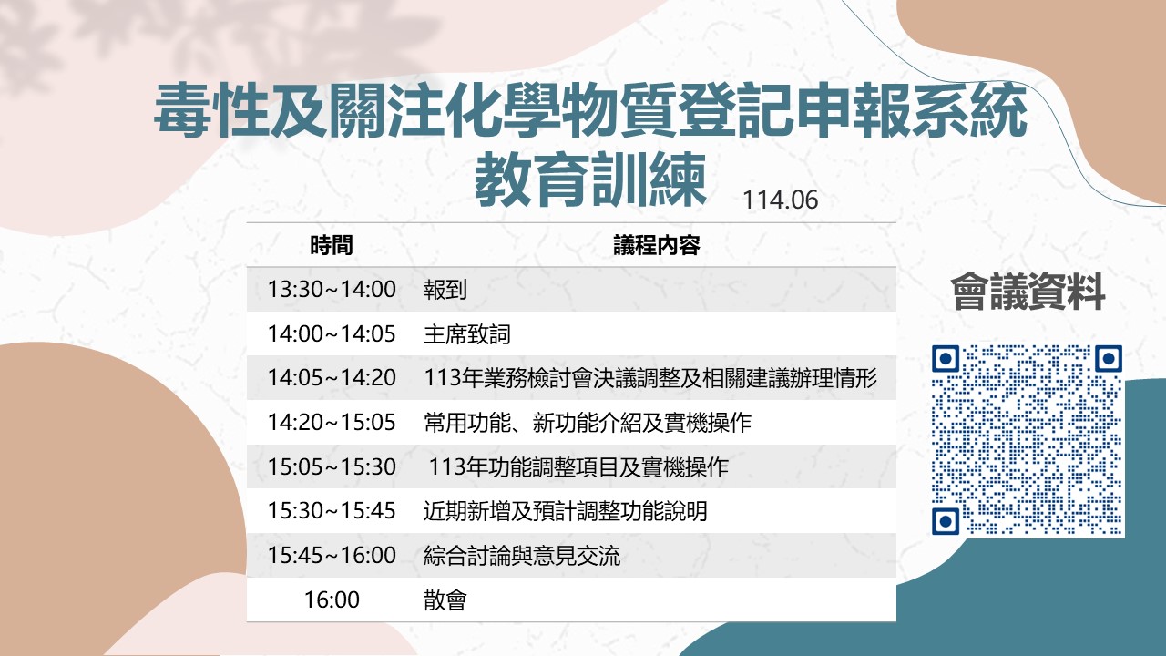 | 活動名稱 | 毒性及關注化學物質登記申報系統功能精進研商會 |