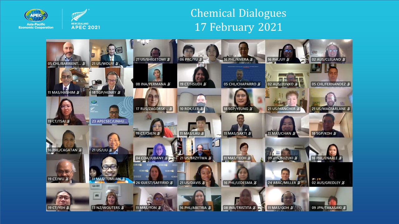 | 探討議題 | 1. 紐西蘭介紹主辦年優先議題,包含經貿復甦、包容與永續成長、創新與數位化復甦,並落實《太子城願景2040》(Putrajaya Vision 2040)。 2. 討論法規合作及謀合虛擬工作小組(Virtual Working Group on Regulatory Cooperation and Convergence,簡稱VWGRCC)執行進度,推動風險評估能力建構與法規檢核表應用。 3. 分享化學品全球調和制度(Globally Harmonized System of Classification and Labelling of Chemicals,簡稱GHS)執行情形、資料交換與海洋廢棄物治理及永續化學議題發展。 |