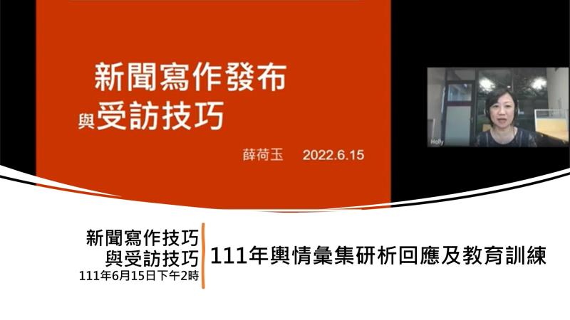 本年度訓練課程特邀國立清華大學薛荷玉講師,引導同仁將艱深的專有名詞轉為簡單易懂的文字,並透過媒體的傳遞,將政令宣導、活動訊息等有效的傳達給民眾知悉或參與,除了增加機關的曝光度外,將訊息正確且有效率的傳遞,使民眾瞭解政府現行推動的政策,另對假訊息或具爭議事件,亦可透過新聞稿將正確訊息即時向民眾說明及澄清,建立民眾對政府的信任。