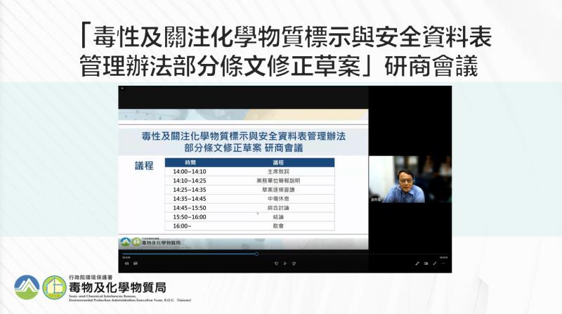 為修正「毒性及關注化學物質標示與安全資料表管理辦法」召開研商會議,簡報說明此次修正內容,逐條宣讀草案,並以線上提問單互動討論,蒐集各界意見。